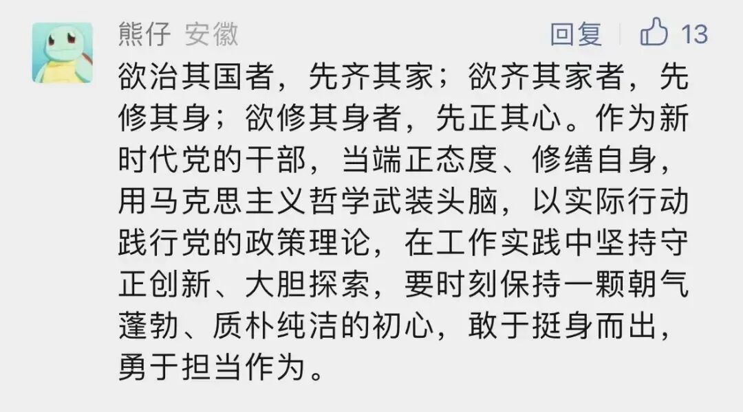 要在全面落實上下功夫。空談誤國、實干興邦,一分部署、九分落實。大力弘揚理論聯(lián)系實際的馬克思主義學風,強化問題導向、實踐導向、需求導向,把自己擺進去、把職責擺進去、把工作擺進去,深化實踐運用,增強工作的原則性、系統(tǒng)性、預見性、創(chuàng)造性,切實把學習成效轉化為推動黨和國家事業(yè)發(fā)展的強大力量。更加自覺地用習近平新時代中國特色社會主義思想之“矢”,去射本地區(qū)本部門改革發(fā)展之“的”,創(chuàng)造性地開展工作,做到既為一域增光、又為全局添彩。